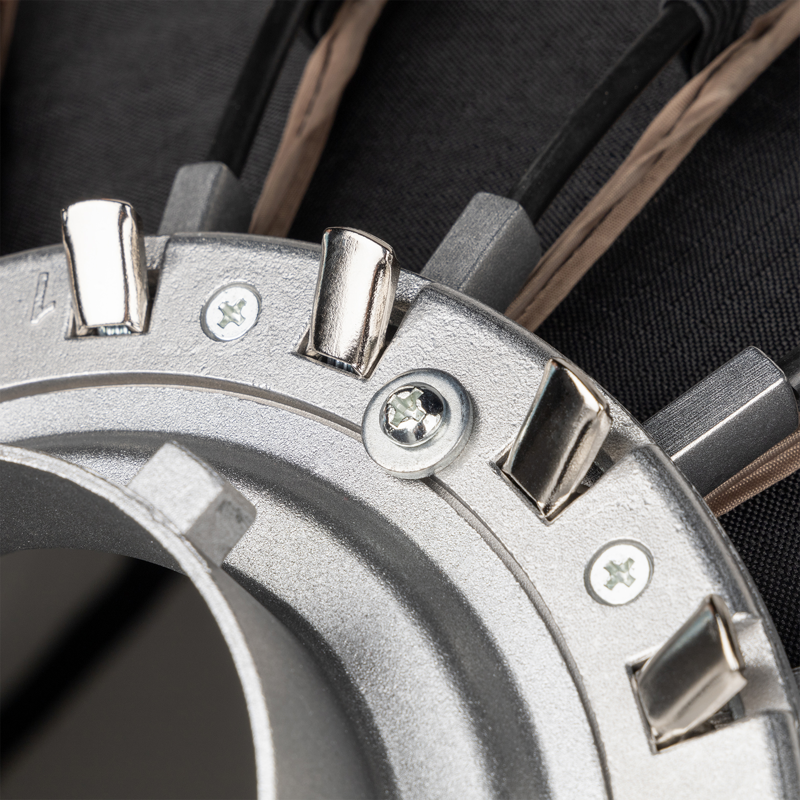 Štruktúra softboxu je opevnená 16 odolnými opornými tyčami, zatiaľ čo jeho strieborné vnútro maximalizuje výkon vášho svetelného zdroja. Ponúka koncentrovaný, mäkký výstup s presnejšími a kontrastnejšími okrajmi, ktoré vášmu objektu dodajú rozmer, mnoho detailov a prirodzene vyzerajúce iskry v očiach.
