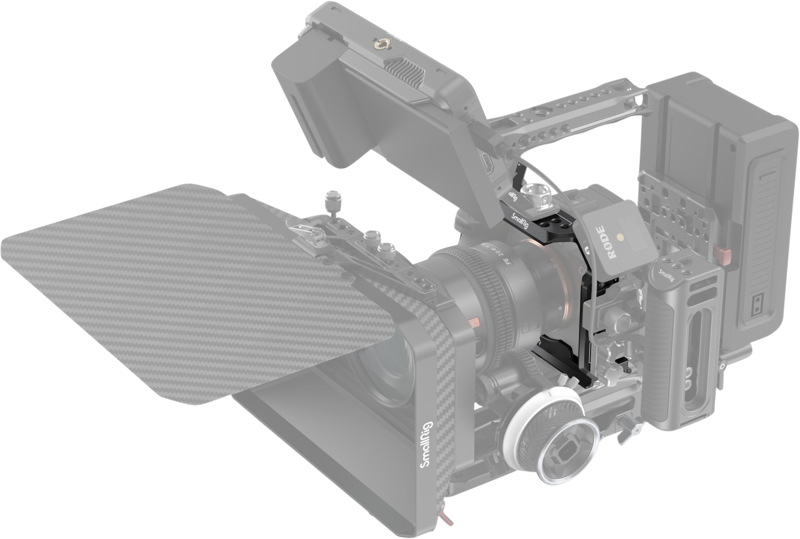 Pre upevnenie príslušenstva, Hot Shoe umiestnená na vrchu umožňuje jednoduché vyberanie ramien a príslušenstva namontovaného navrchu. Klietka má na ľavej strane štandardnú lištu, ktorá umožňuje montáž držadiel, svoriek a iného kompatibilného príslušenstva. Integrovaná doska v spodnej časti klietky umožňuje pripevniť voliteľný blok, ktorý umožňuje ďalšie pripevnenie na 15 mm tyčky, čím rozšíri vašu kameru. Okrem toho je možné pripojiť aj doštičku Arca Swiss / Manfrotto.