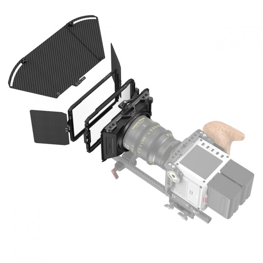 Bočná vlajka je pripevnená buď k matnej škatuľke alebo k filtračnej vaničke cez štrbiny a otvára sa o 180°, aby blokovala rozptýlené svetlo.