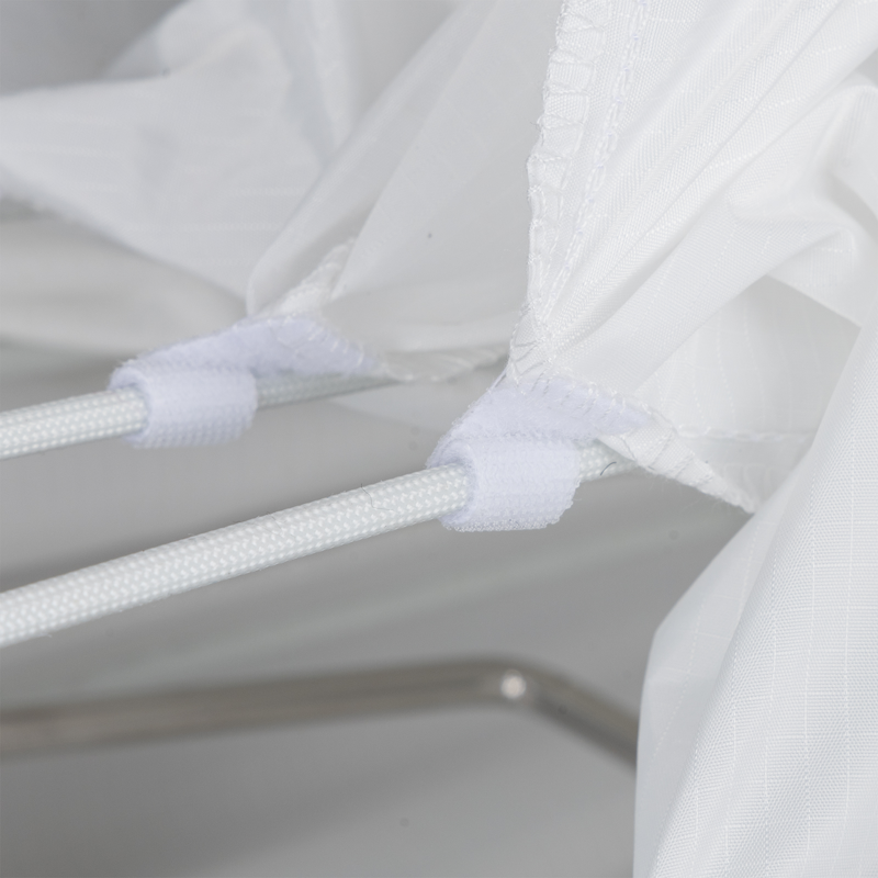 Integrovaný dizajn viacerých suchých zipsov na upevnenie dáždnikovej kosti a mäkkej svetelnej látky, blokovania svetla a tienenia a spodného skľučovadla, pripravené na použitie, inštalácia v jednom kroku, žiadne starosti s problémom posunu kostry.