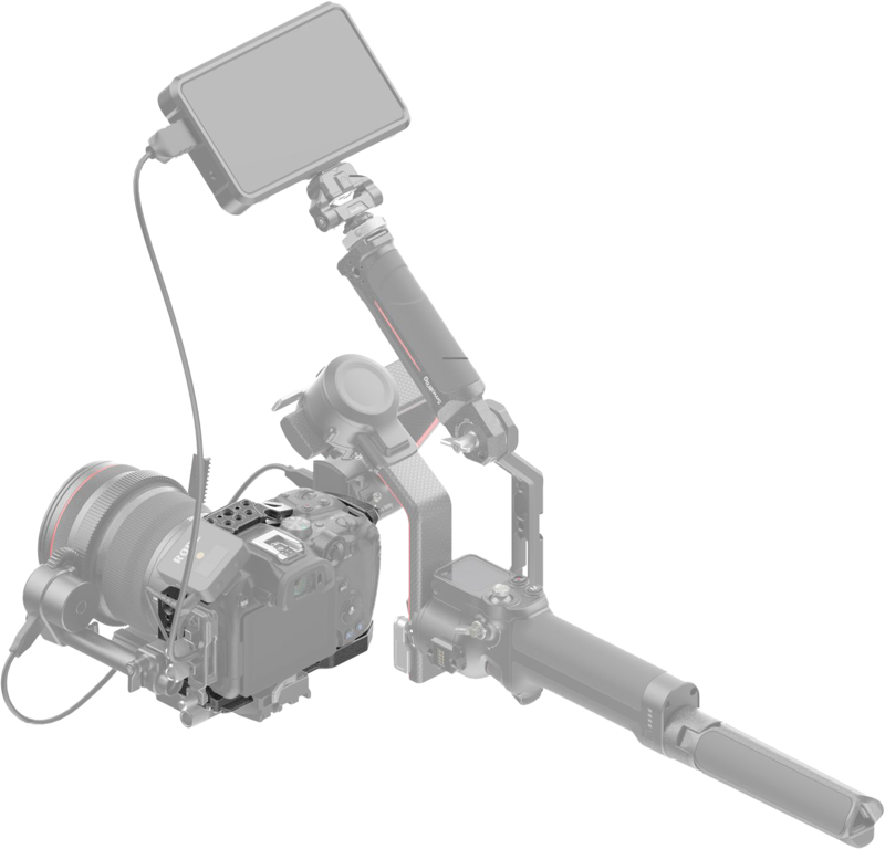 Rýchloupínacia platňa Arca-Swiss v spodnej časti podporuje stabilizátory DJI RS 2 / RSC 2 a statívy Arca-Swiss, čo umožňuje rýchle prepínanie medzi scénami snímania z ruky, stabilizátora a statívu.