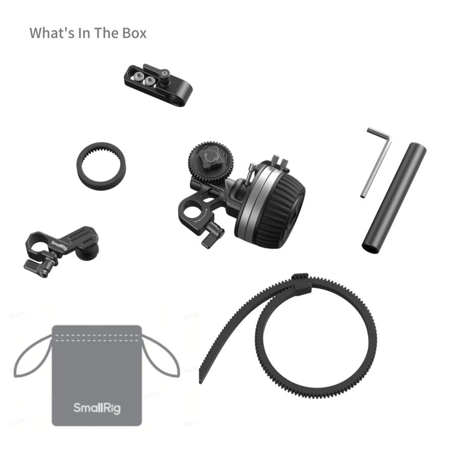 Súčasťou balenia je silikónová prevodovka (ID 3852), ktorá umožňuje zaostrovanie na báze trenia pre bezzrkadlové objektívy, spolu s kompaktným silikónovým ručným kolieskom pre protišmykový úchop a jemne vyladené ovládanie. Toto následné zaostrovanie sa upevňuje pomocou tyče priemeru 15mm a svorky s jednou tyčou (ID 1549) na ľavej alebo hornej strane objektívu s nastaviteľnými uhlami pre flexibilné konfigurácie. Jeho modulárna konštrukcia zabezpečuje rýchle a presné nastavenie pre snímanie z ruky, zo statívu a pre rôzne scenáre snímania.