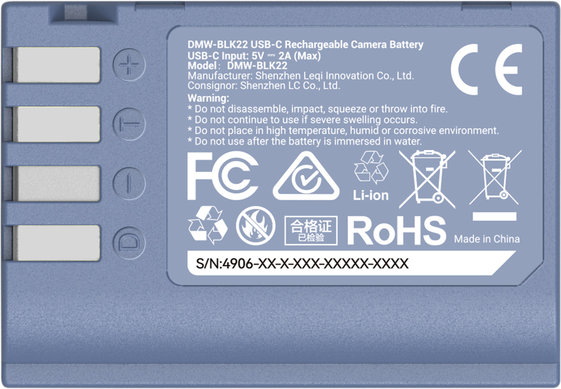 • SmallRig 4906 Camera Battery USB-C Rechargeable DMW-BLK22