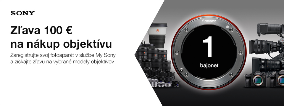 Ak ste si zakúpili oprávnený fotoaparát a zaregistrovali ho na lokalite My Sony, získate zľavový kód e-mailom. Zľavu 100 € môžete uplatniť na Váš nasledujúci nákup vybraných objektívov. Akcia platí do odvolania.