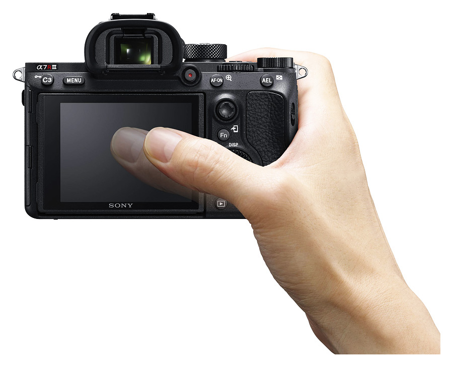 Sony Alpha A7R Mk.III je vybavená veľmi kvalitným 0,5“ elektronickým OLED Tru-Finder hľadáčikom s rozlíšením Quad-VGA (3 690 000Pix) a vysokou obnovovacou rýchlosťou 120obr./s, ktorý sa vyznačuje presnou reprodukciou detailov, kontrastu a čiernej farby, pričom zároveň udržiava prirodzený jas fotografovanej scény. Režim vysokej kvality, ktorý je vhodný na nastavenie jemného zaostrenia, plne využíva bohaté obrazové dáta zo snímača na zobrazenie prirodzenejších vysoko presných záberov s minimálnym moiré a zubatosťou, takže sa môžete viac sústrediť na prácu bez rušivých vplyvov. Pre plynulé zobrazenie pohybu je možné si nastaviť obnovovaciu frekvenciu hľadáčika až na 120/100obr./s a pre jemnejšiu kontrolu pri manuálnom zaostrení je možné si v elektronickom hľadáčiku zapnúť zväčšenie vybranej zaostrovacej oblasti.