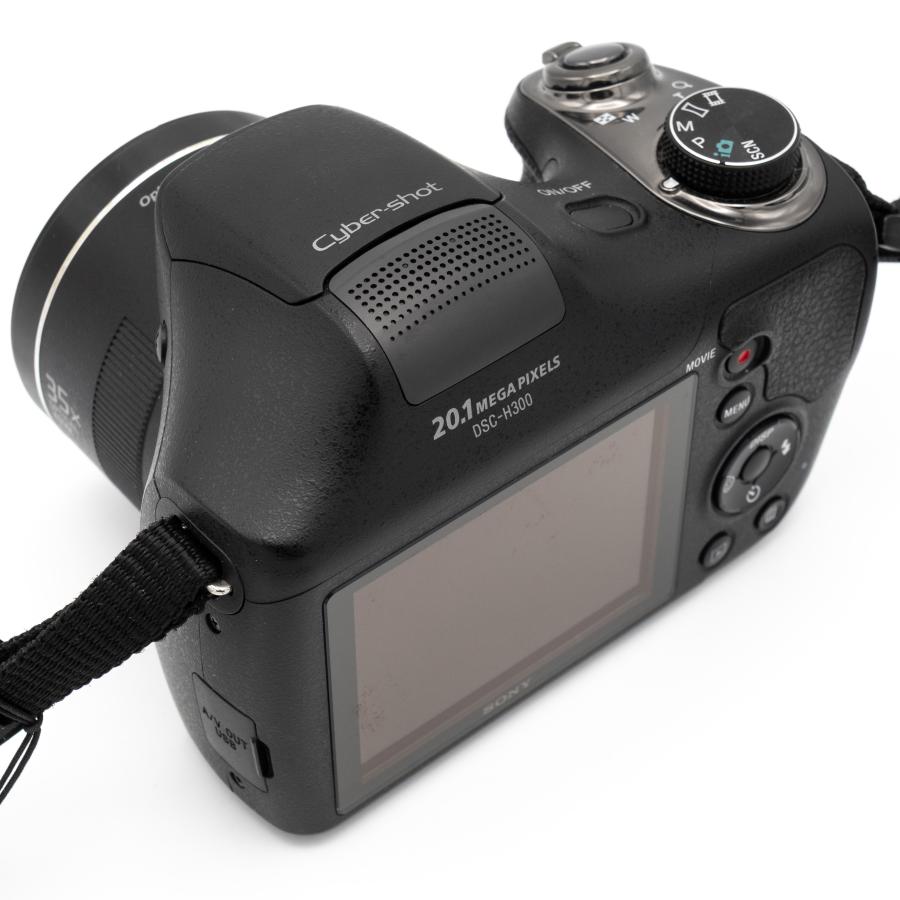 Senzor fotoaparátu umožňuje fotografovať s citlivosťami ISO v rozsahu od ISO80 po ISO3200 nastaviteľnými po tretinových krokoch. Okrem neho je Sony Cyber-Shot DSC-H300 osadený široko rozsahovým opticky stabilizovaným objektívom Sony G 25 – 875mm f/3.0 – 5.9. Ktorý sa vyznačuje 35x zoomom a rozsahom ohniskových vzdialeností 25 – 875mm pri clone f/3.0 – f/5.9. Vďaka kombinácii snímača s veľkým rozlíšením, vysoko výkonného procesrou spracovania obrazu BIONZ R a kvalitného stabilizovaného objektívu Sony G 25-875mm f/3.0-5.9 je fotoaparát Sony Cyber-Shot DSC-H300 výnimočne výkonným fotoaparátom, ktorý Vám umožní fotografovať fotky s prvotriednou obrazovou kvalitou a bohaté na detaily. Rozsah objektívu je vhodný na fotenie širokouhlých záberov krajiniek ako aj na fotenie športu a divo žijúcej zvery. Fotoaparát dokáže fotografovať kontinuálne rýchlosťou 0,8 obr./s. v plnom rozlíšení. Okrem toho fotoaparát vyniká aj funkciou video záznamu vo HD rozlíšení – 1280 x 720/30p (AVCHD/MP4), kvalitným Clear Photo LCD displejom s uhlopriečkou 3“ a rozlíšením 460 000 Pix. Sony Cyber-Shot DSC-H300 je napájaný pomocou štvorice AA batérií (tužkových batérií), ktoré podľa štandardov CIPA postačujú na 310 záberov / 155 minút videa. Celá výbava fotoaparátu je vsadená do kvalitného, robustného a veľmi kompaktného tela fotoaparátu, ktoré odolá aj nešetrnému zaobchádzaniu. Fotoaparát sa vyznačuje veľmi nízkou hmotnosťou iba 650g.