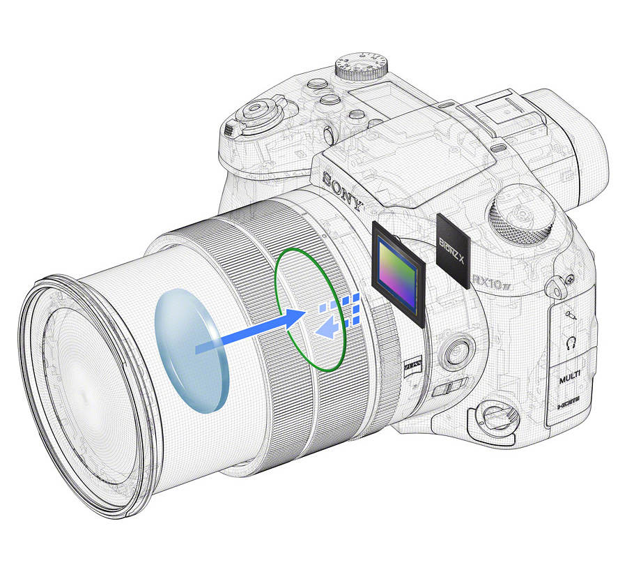 Objektív ZEISS Vario-Sonnar T* 24-600mm f/2.4-4 OSS s 25x optickou transfokáciou poskytuje pozoruhodný širokouhlý až telefotografický rozsah 24 – 600 mm s funkciou makro a je vybavený prvkami z pokročilého asférického skla (AA) a prvkami zo skla s maximálne nízkym rozptýlením (ED), povrchovou vrstvou ZEISS® T* a veľkou clonou F2,4 – 4. Vďaka všetkým týmto prvkom fotoaparát poskytuje vysoký optický výkon pre vysoké rozlíšenie a nádherné rozostrenie (bokeh).