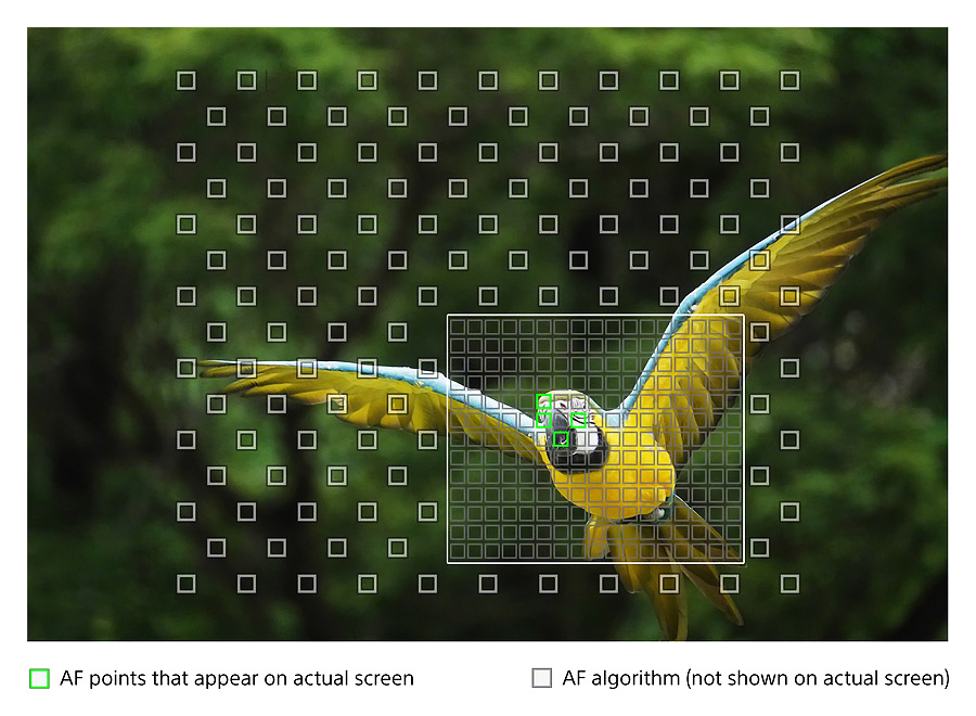 315-bodové automatické zaostrovanie s detekciou fázového rozdielu v ohniskovej rovine umožňuje výnimočne rýchle a presné automatické zaostrovanie a sledovanie objektu. Fotoaparát je navyše vybavený vrstveným obrazovým snímačom Sony Exmor RS® formátu 1“ s čipom DRAM a (efektívnym) rozlíšením 20,1 Mpx, ktorý umožňuje snímanie mimoriadne spomaleného pohybu so snímkovou frekvenciou až 960 snímok/s, a elektronickou uzávierkou s minimálnym skreslením a výnimočnou rýchlosťou až 1/32 000 s.