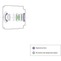 Najmodernejšia optika poskytuje trvalo vysoké rozlíšenie až po okraje obrazu. Optimálne umiestnenie troch asférických prvkov ideálne koriguje zakrivenie poľa, čím zaisťuje zachovanie vynikajúceho rozlíšenia v rámci celej snímky aj pri maximálnej clone. Tri prvky zo skla ED účinne potláčajú chromatickú aberáciu a rozmazanie farieb a poskytujú vynikajúcu kvalitu obrazu.