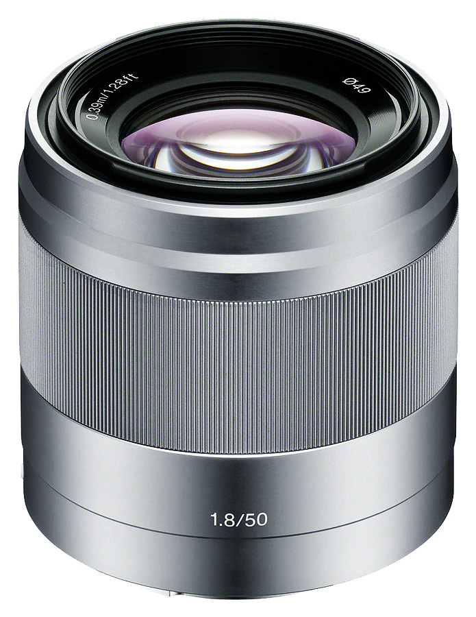 - Sony E 50mm f/1.8 OSS, Strieborný