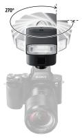 Uhol vyklápania zábleskovej hlavy doprava: 0°, 30°, 45°, 60°, 75°, 90°, 120°, 150°, 180°