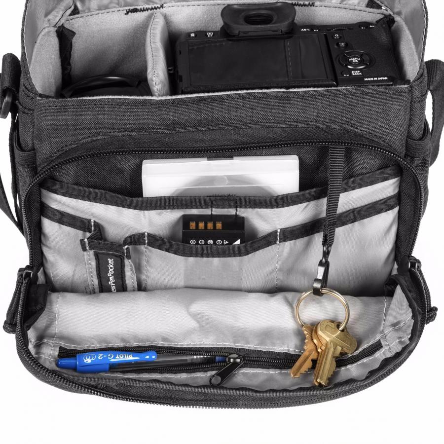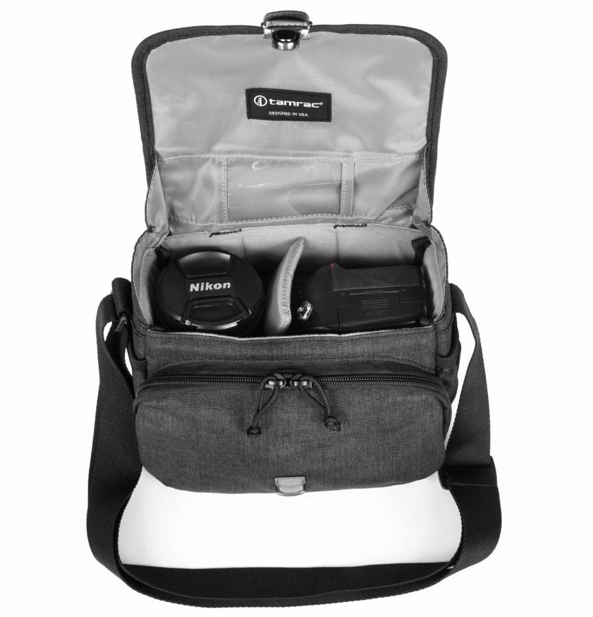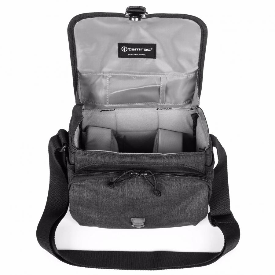Nenápadná ale štýlová a premyslená konštrukcia zaručuje v každom okamihu maximálne pohodlie a bezpečnosť pre vašu fototechniku. Vnútorné priestory sú delené priehradkami na suchý zips, môžete ich tak ľahko prispôsobiť vašim potrebám. Taška Tamrac Bushwick 2 je určená pre 1 menšie fotoaparát, 1-2 objektívy, externý blesk a drobné príslušenstvo, ktoré sa vkladá do niekoľkých menších vreciek. Tie nájdete vnútri aj na vonkajšej strane tašky. Zadné vrecko pojme malý tablet.