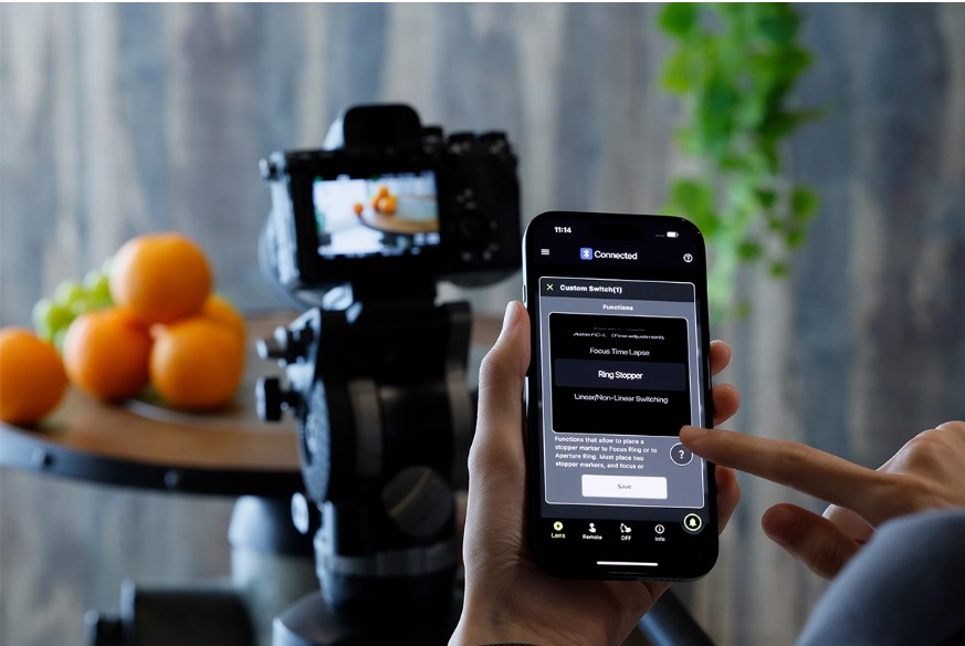 "Ring function" je nastavenie ostriaceho prstenca na manuálne ostrenie alebo na ovládanie clony. Režimy sa prepínajú tlačidlom a dá sa nastaviť prepínanie stlačením alebo podržaním 1 sekundu.