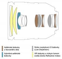 Stavba objektívu: 17 šošoviek v 12 skupinách