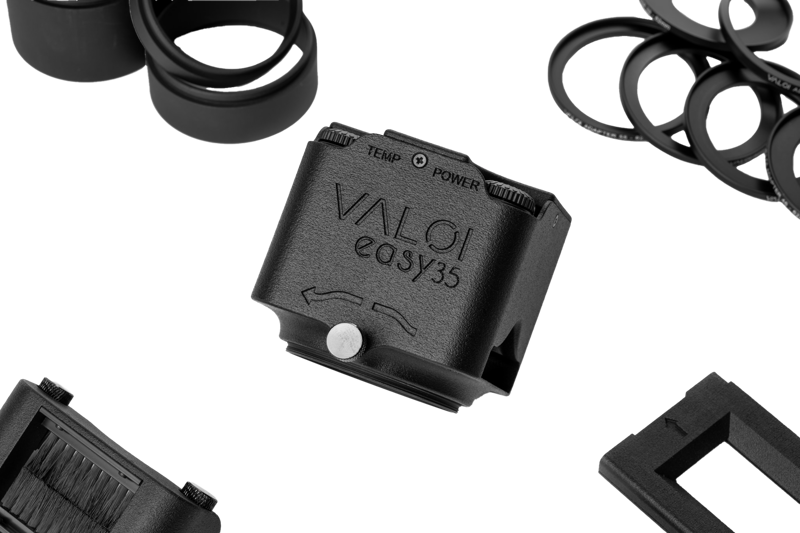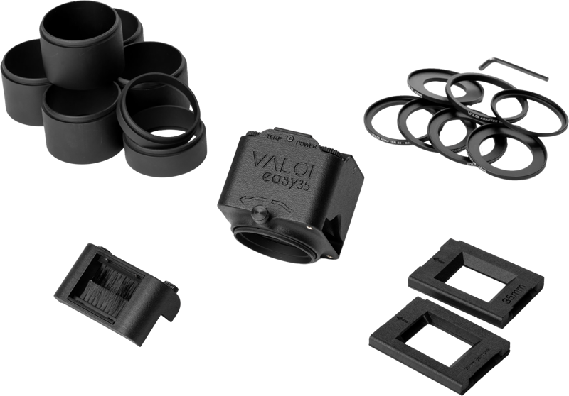 VALOI easy35 sa naskrutkuje na makroobjektív a umožňuje skenovať 35 mm film pomocou digitálneho fotoaparátu. S easy35 je potrebné minimálne nastavenie, zarovnanie alebo chýb, pretože konštrukcia zaisťuje tienenie pred svetlom, dokonalé zarovnanie a pevné pripevnenie k fotoaparátu. Súprava sa dodáva s 280 mm trubicami na snímanie filmu, Umožňuje použitie väčšiny skutočných makroobjektívov na trhu.