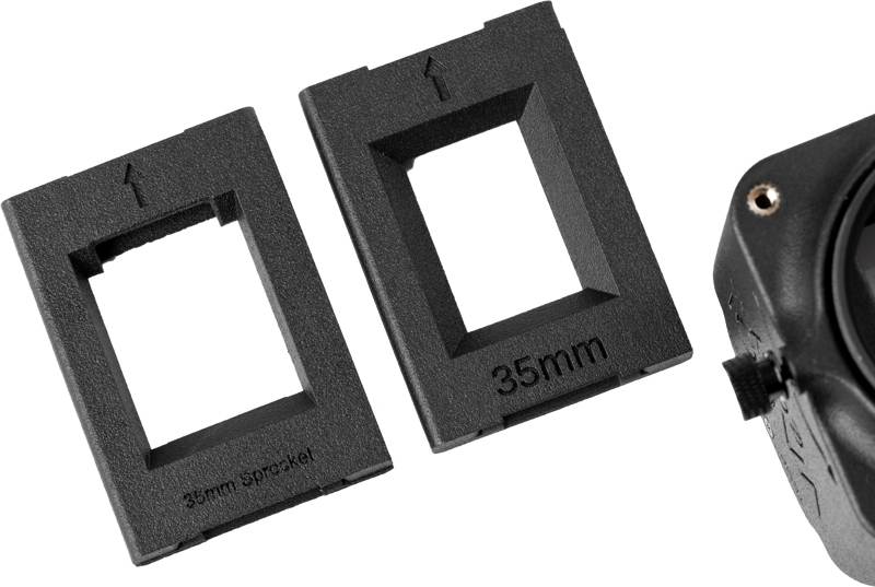 Držiak ozubeného kolesa easy35 35 mm je kompatibilný so systémom easy35. Je nahrádza držiak 35 mm, ktorý sa dodáva s hlavnou jednotkou systému a umožňuje používateľovi skenovať rám a oblasť vrubov mimo rámu, pričom drží film v rovine pomocou konštrukcie s dvojitou S-krivkou.
