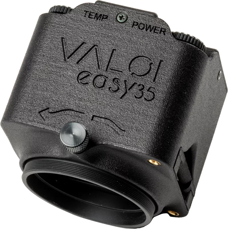 VALOI easy35 sa naskrutkuje na makroobjektív a umožňuje skenovať 35 mm film pomocou digitálneho fotoaparátu. Pri použití skenera easy35 je potrebné len minimálne nastavenie, zarovnanie alebo chýb, pretože konštrukcia zaisťuje tienenie pred svetlom, dokonalé zarovnanie a pevné pripevnenie k fotoaparátu. Súprava sa dodáva s 280 mm trubicami na snímanie filmu, Umožňuje použitie väčšiny skutočných makroobjektívov na trhu.
