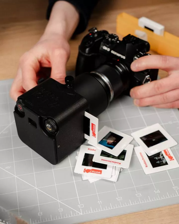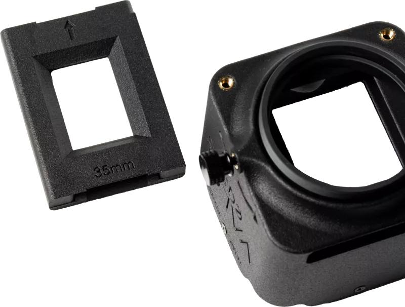 Priložená dištančná trubica a adaptéry s filtrovým závitom umožňujú používať väčšinu skutočných makroobjektívov na na trhu a akýkoľvek systémový fotoaparát a zabudovaný svetelný a profesionálny držiak na film prináša profesionálne výsledky pri oveľa vyššej rýchlosti ako tradičné skenery.