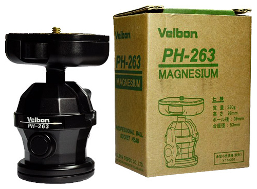Velbon PH-263 je ľahká guľová hlava vyrobená z magnéziových zliatin, ktorá umožňuje vyklopenie upínacej časti o 90° a tým aj fotografovanie na „výšku“. K zafixovaniu polohy slúži jedna matica s ušami a k nastaveniu tuhosti chodu je z druhej strany malá aretačná matica. Guľová hlava Velbon PH-263 je mimoriadne kompaktná a ku statívu sa montuje pomocou klasickej statívovej skrutky.