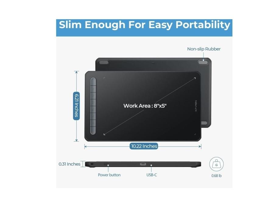 Kresliaci tablet Deco MW je vybavený vysokokapacitnou lítiovou batériou (1000 mAh/3,7 V) na viac ako 10 hodín prevádzky, ktorá udrží výkon počas celého dňa. Vezmite si tento tablet so sebou, kamkoľvek chcete, a vyjadrite svoje inšpirácie tak, ako prichádzajú. Štíhle telo zariadenia s pohodlnými rozmermi a atraktívnym dotykovým ovládaním sa bude ľahko prenášať na cestách. Popustite uzdu svojej kreativite kedykoľvek a kdekoľvek. Neviditeľné nápady a skutočné prezentácie sú vzdialené len jeden kresliaci tablet Deco.
