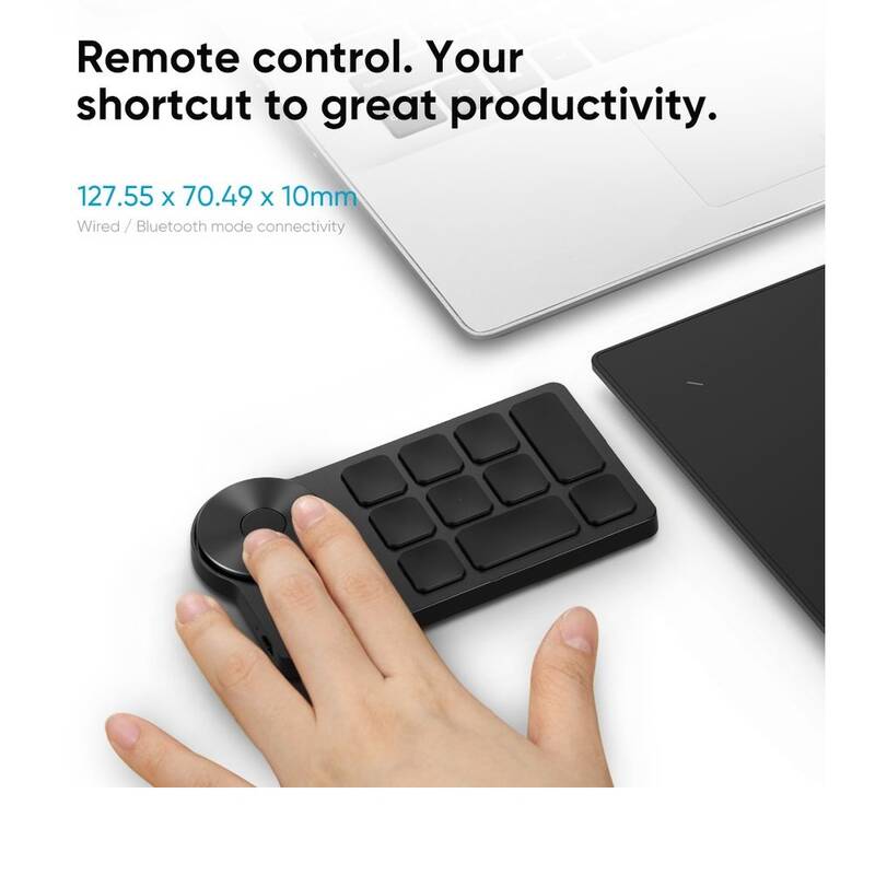 Súčasťou vybavenia je aj Wireless Shortcut Remote, teda diaľkový ovládač s číselníkom pre programovanie klávesových skratiek podľa vlastných potrieb. Zároveň si môžete vytvoriť až 4 sady, čím získate 40 klávesových skratiek s funkciou Anti-ghosting.