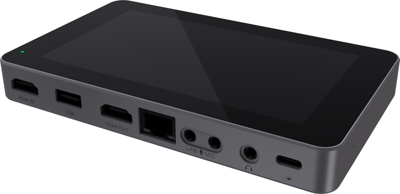 Všetko sa jednoducho ovláda 7-palcovou dotykovou obrazovkou, ktorá slúži aj ako monitor. Na veľkej dotykovej obrazovke sa zobrazuje výstupný streamovaný obraz, ako aj ďalšie vstupné streamy. Na LCD obrazovke sa tiež zobrazujú ovládacie prvky, takže môžete jednoduchým dotykom prepínať medzi zdrojmi informácií.