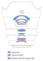 Stavba objektívu: 11 šošoviek v 10 skupinách